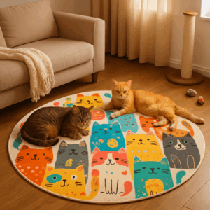 Enhance Your Home Decor With A Cat Print Round Rug: Comfort, Style, And Safety For Cat Lovers