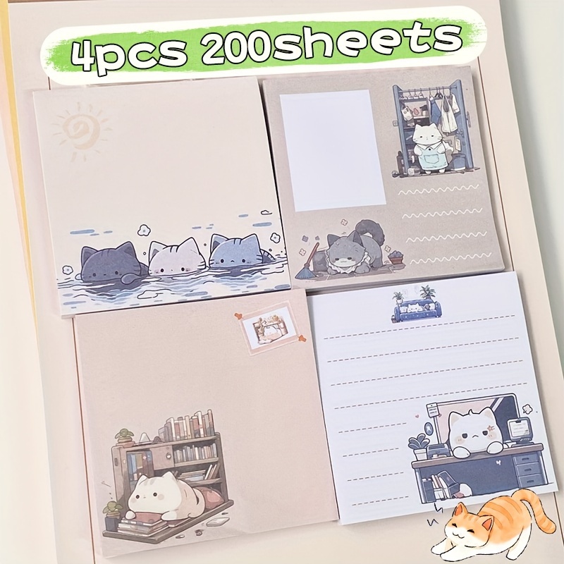 4pcs 200 Sheets Cute Cat Comic Cartoon Sticky Notes Diy Journal Book Stationery Office