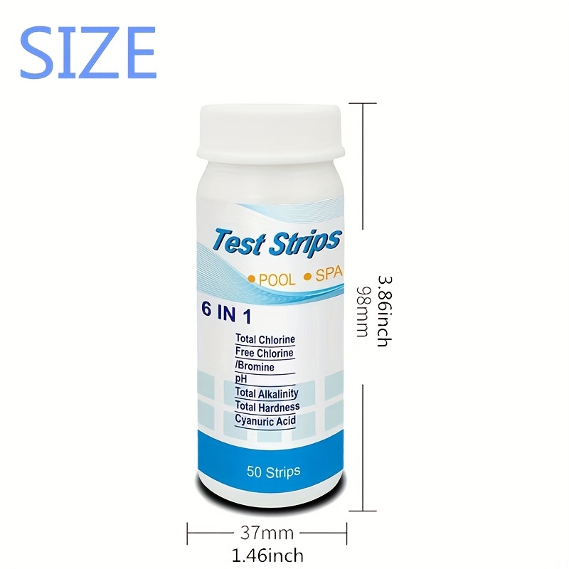 - Comprehensive Testing: Easily measure total chlorine, free chlorine, bromine, pH, total alkalinity, cyanuric acid (stabilizer), and total hardness with one strip, ensuring all vital pool parameters are covered.