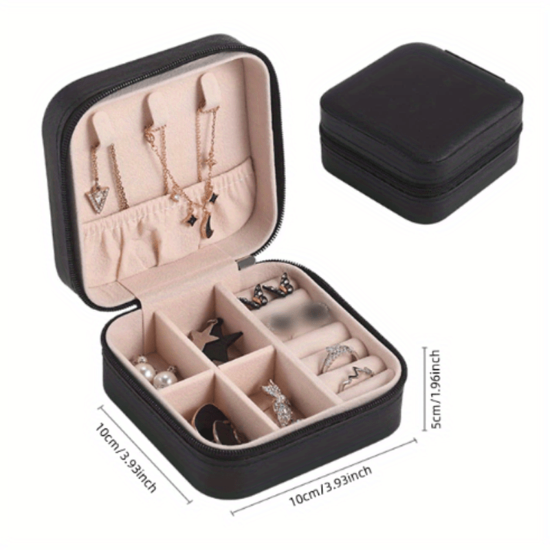 Portable Square Jewelry Storage Box Compact Travel Organizer For Earrings Necklaces Rings Ideal Girl Gift 393x393x196