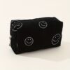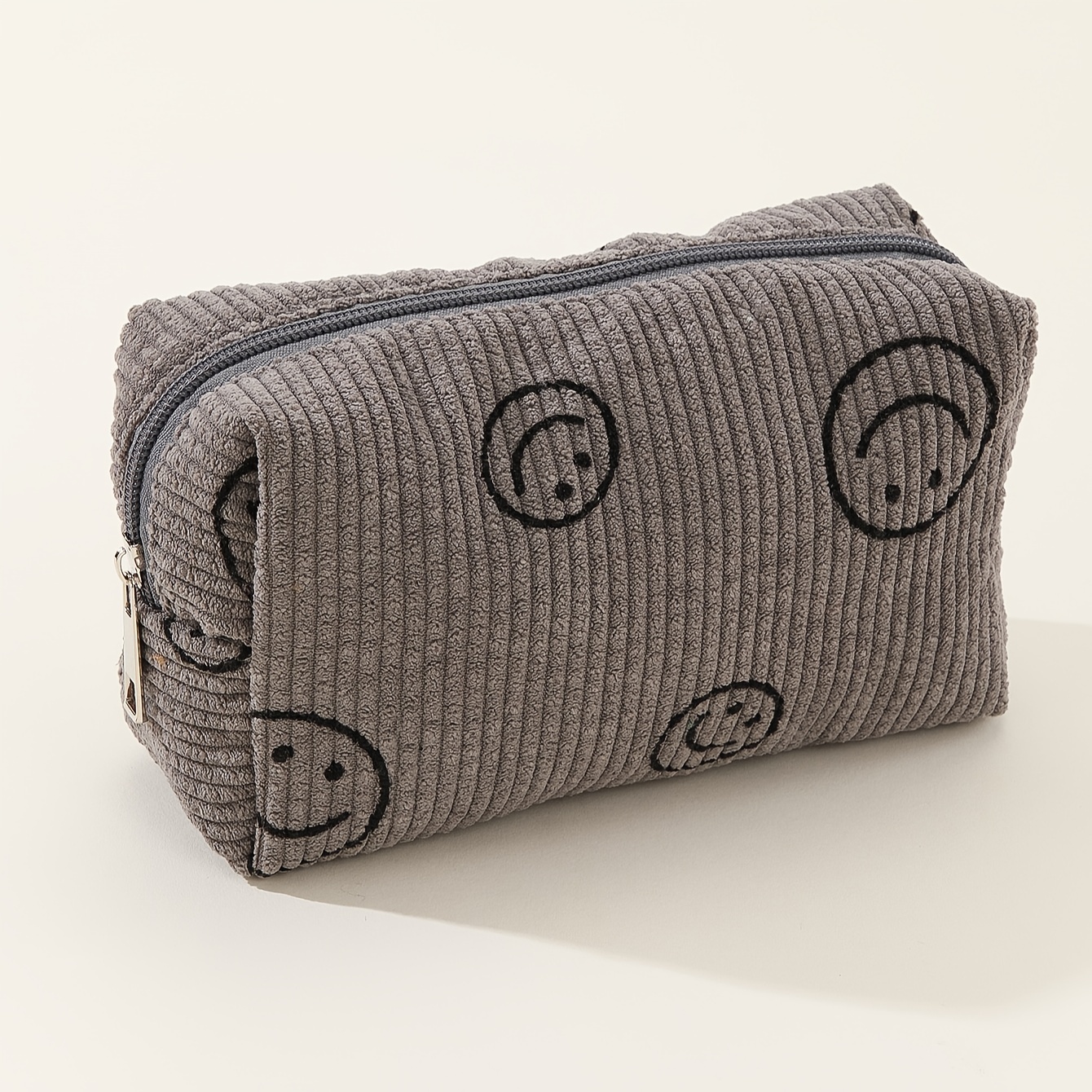Adorable Smiling Face Corduroy Makeup Bag With Zipper Cute Portable Roomy Travel Cosmetic Bag For Women
