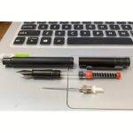 The spring converter is perfect for pens with a 3.4mm converter, such as the Hongdian fountain pen. Simply dip the tip into bottled ink, press the spring stick down, and release to draw ink effortlessly. Assembly is straightforward with three parts: converter, white connector, and needle. Just follow the easy steps for a perfect fit. Remember, this non-sterile kit is intended for industrial use only. Embrace the convenience and cost-effectiveness of refilling your fountain pens with this all-in-one kit!