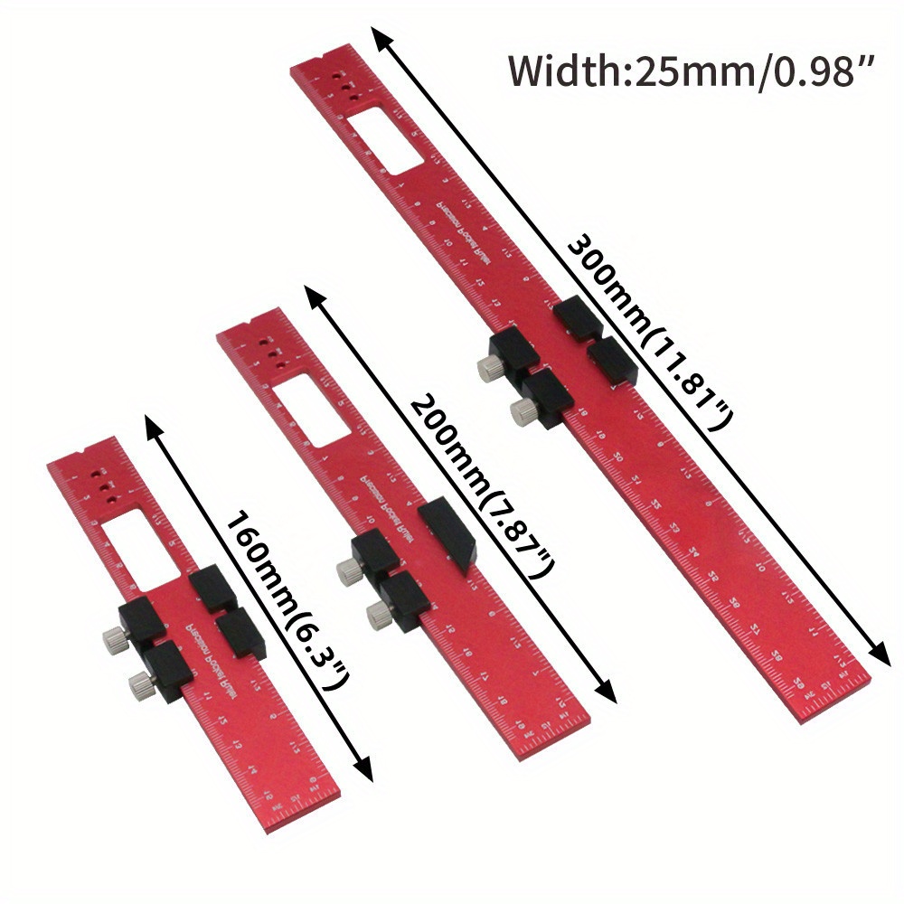 Discover the ultimate tool for precision woodworking with our Ergonomic Precision Woodworking Truler. Crafted from durable aluminum alloy, this pocket ruler offers superior accuracy and reliability. Available in three sizes—160mm (6.3in), 200mm (7.9in), and 300mm (11.8in)—it’s designed to fit seamlessly into your toolkit. Featuring dual metric and inch measurements, it ensures you have the flexibility needed for any project. The ergonomic design provides comfort during prolonged use, while the slide stops enhance accuracy and ease of use. Finished in an eye-catching red and black color scheme, this ruler is as stylish as it is functional. Elevate your craftsmanship with this indispensable tool.
