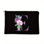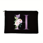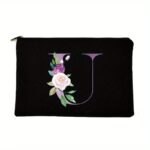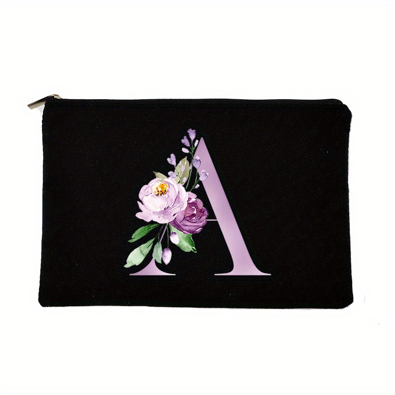 Floral Letter Pattern Cosmetic Bag Portable Zipper Makeup Toiletry Organizer For Men Women