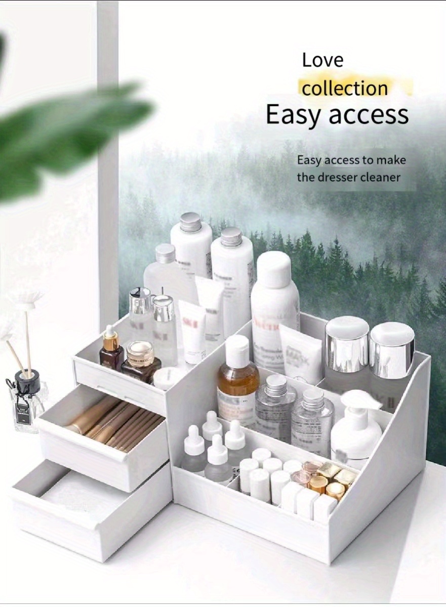 This Large-capacity Vanity Organizer offers both style and functionality, perfect for maintaining an elegant and organized space. Designed to accommodate an extensive range of cosmetics and jewelry, it ensures that your beauty essentials and accessories are always within reach and neatly arranged. The polished finish adds a touch of luxury to your vanity, making it a visually pleasing addition to any room. Ideal for those who seek convenience without compromising on aesthetics, this organizer is a sophisticated solution for all your storage needs.